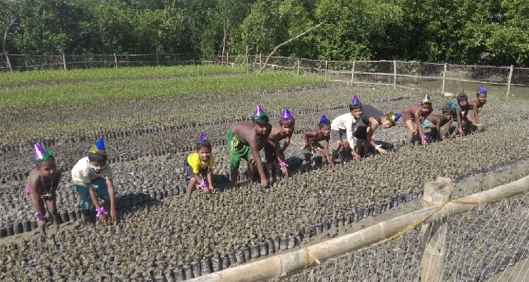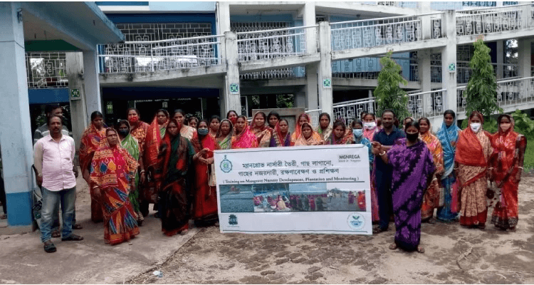 For policy level advocacy and consolidating networks of stakeholders both Government and Non-government, NEWS has partnered with the Government of West Bengal under the Mahatma Gandhi National Rural Employment Guarantee Scheme (MGNREGS). NEWS has conducted capacity-building programs on mangrove restoration. Training on nursery development, plantation, and monitoring were imparted to 65 Gram Panchayats of 10 blocks of the South 24 Parganas district. NEWS team members are regularly monitoring the progress of the mangrove nurseries by visiting the nursery sites.