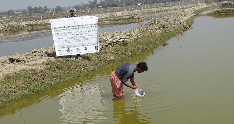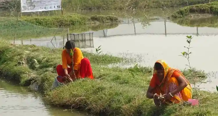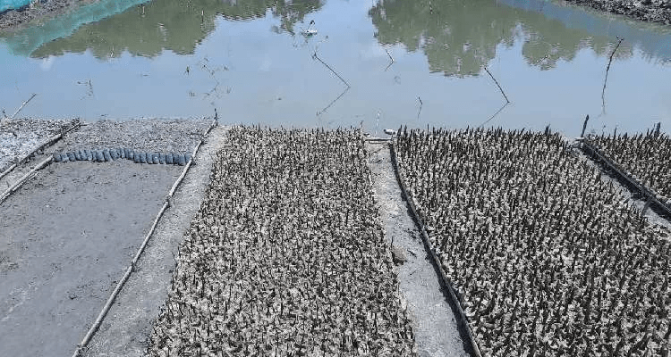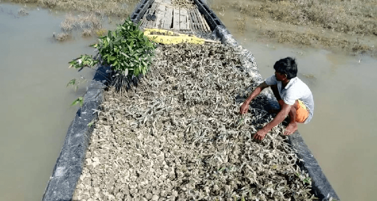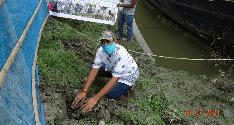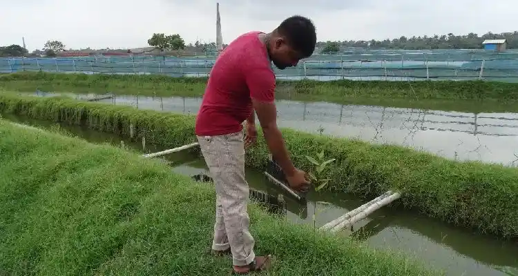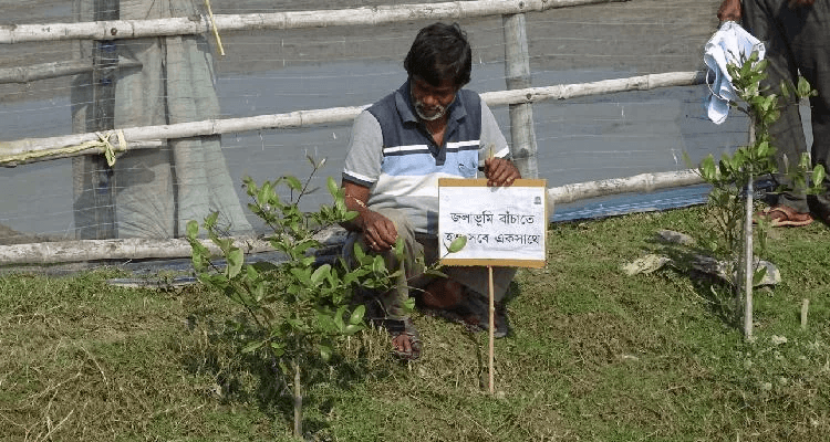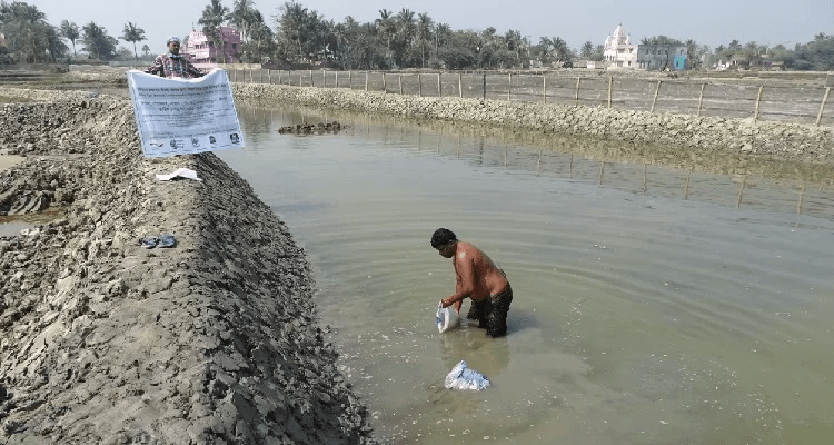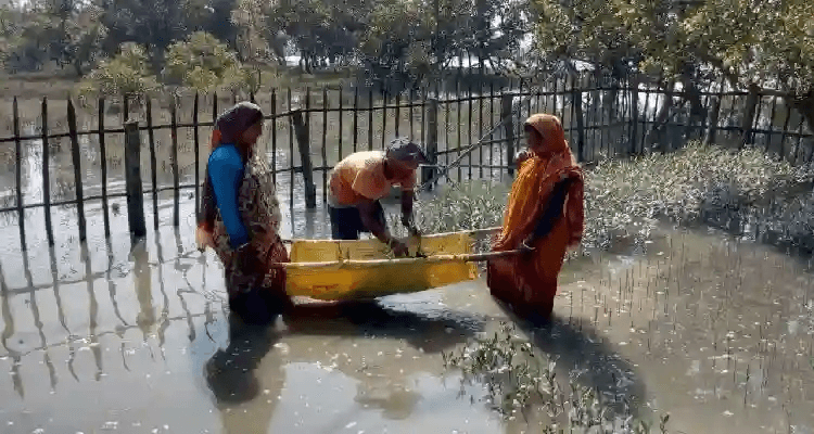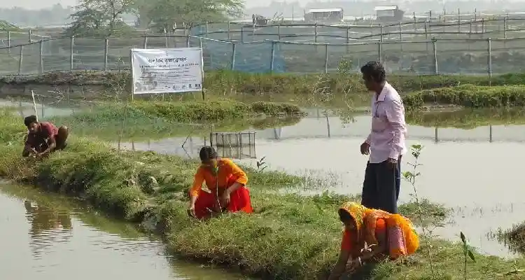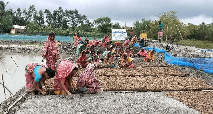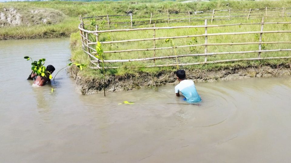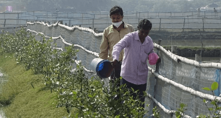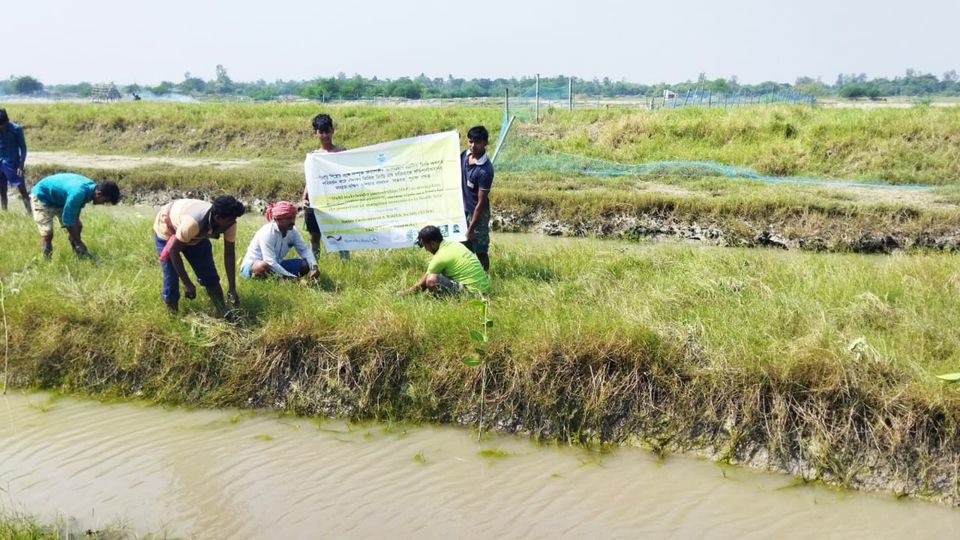 Repair plantation at the Madhabpur IMA site was done under the SAIME project covering a farm area of 10.38 hectares. Around 12 mangrove species comprising Avicennia sp, Bruguiera sp, Rhizophora sp, Phoenix paludosa, etc. were planted on the embankments and along the islands following the standard IMA practice targeting more mangrove coverage. A strong step was put forward toward a climate-adaptive livelihood for the marginal farmers coupled with the ecological restoration of Sundarban.