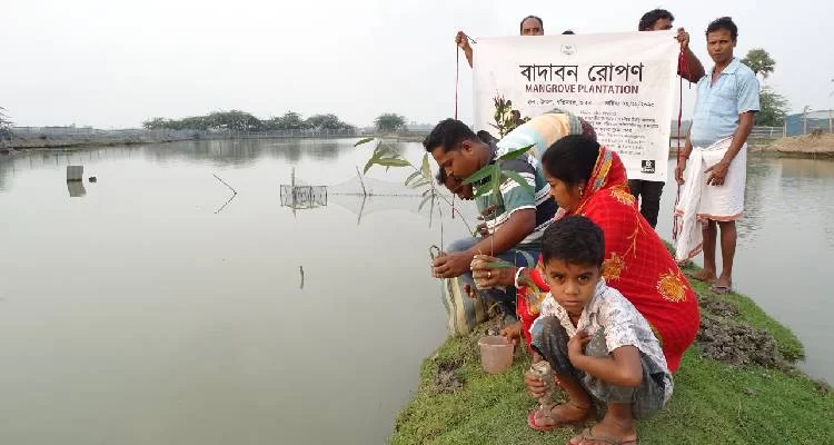 A program was organized by the “Chaital Badaban Samannito Matsya Chaas Samity” farmers’ group where mangrove plantation was done at the embankment of the Bidyadhari River and the mangrove re-plantation activity was carried out in all the seventeen IMA farms. The local Government officials, Panchayat members also actively participated in the plantation program. An awareness campaign was also done to sensitize the importance of the mangroves among the communities. The family members of the IMA farmers also participated in the re-plantation program.At Manmathanagar, the women’s group celebrated the day where the central mangrove nursery was formally inaugurated by the forest officials.