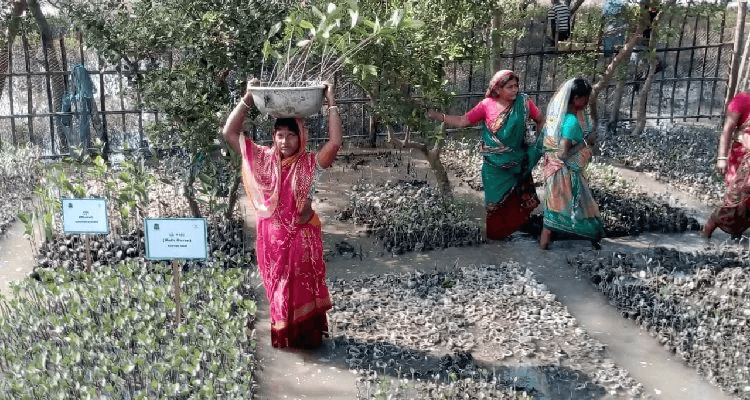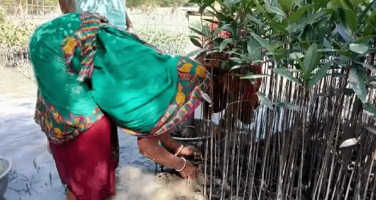 The women tied the Rakhi on the mangrove branches to signify the bond between them and how the mangroves protect the community from natural calamities.