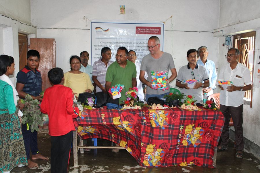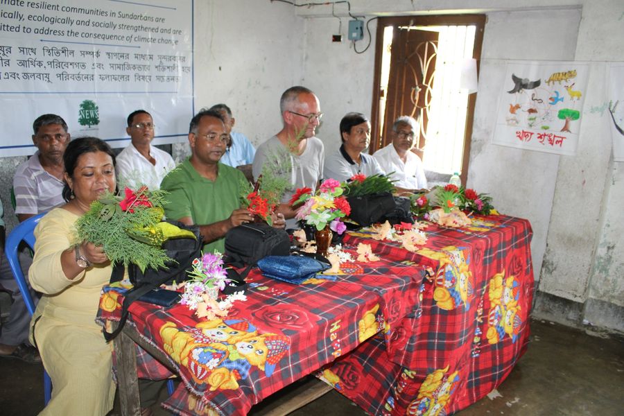 (On 26 June 2022, Mr. Ralph Dejas, on behalf of the Global Nature Fund and Mohammed Maqsudur Rahman, and Professor Sardar Safiqul Islam from Bangladesh Environment & Development Society (BEDS) accompanied by NEWS team members, met with the members of the two eco-clubs, namely, Pankauri Eco Club and Samukkhol Eco Club of Dhaspara Sumatinagar II Gram Panchayat of Sagar block. The members of the two Eco Clubs welcomed the guests with a pleasant ceremony and took the entire event forward by conducting it themselves. Highlighting the need to conserve the Mangrove Ecosystem for the existence of Sagardweep from climate change, the Eco Club members also presented the resource maps, pictures of the food chain, and herbarium sheets prepared by themselves to the visitors.